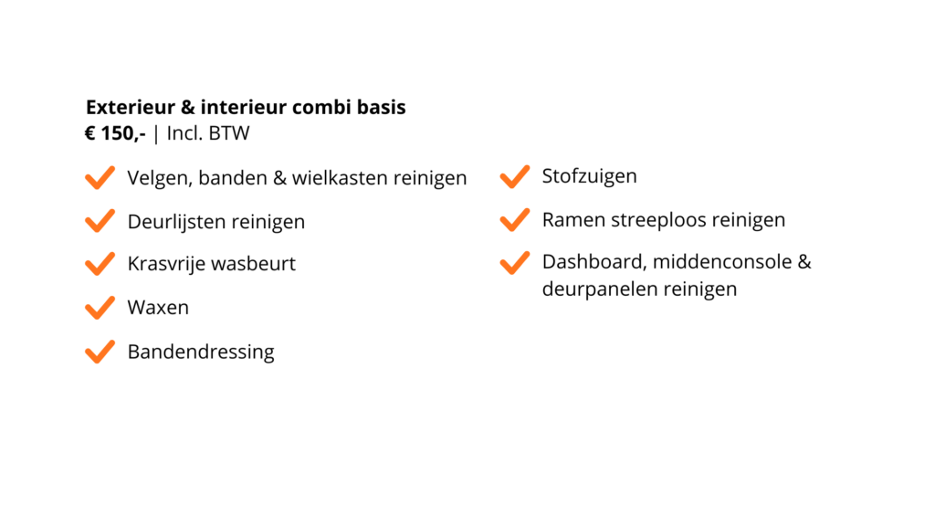 Is de binnenkant van je auto toe aan een opfrisbeurt? Wij bieden verschillende mogelijkheden aan voor het reinigen van het interieur van jouw auto. Zo kunnen wij het interieur stofzuigen, de ramen streeploos reinigen, de stoelen schoonmaken door middel van shampoo-extractie, het alcantara opfrissen en de kunststof delen voeden. Natuurlijk kunnen het dashboard, de middenconsole en de deurpanelen ook gereinigd worden.